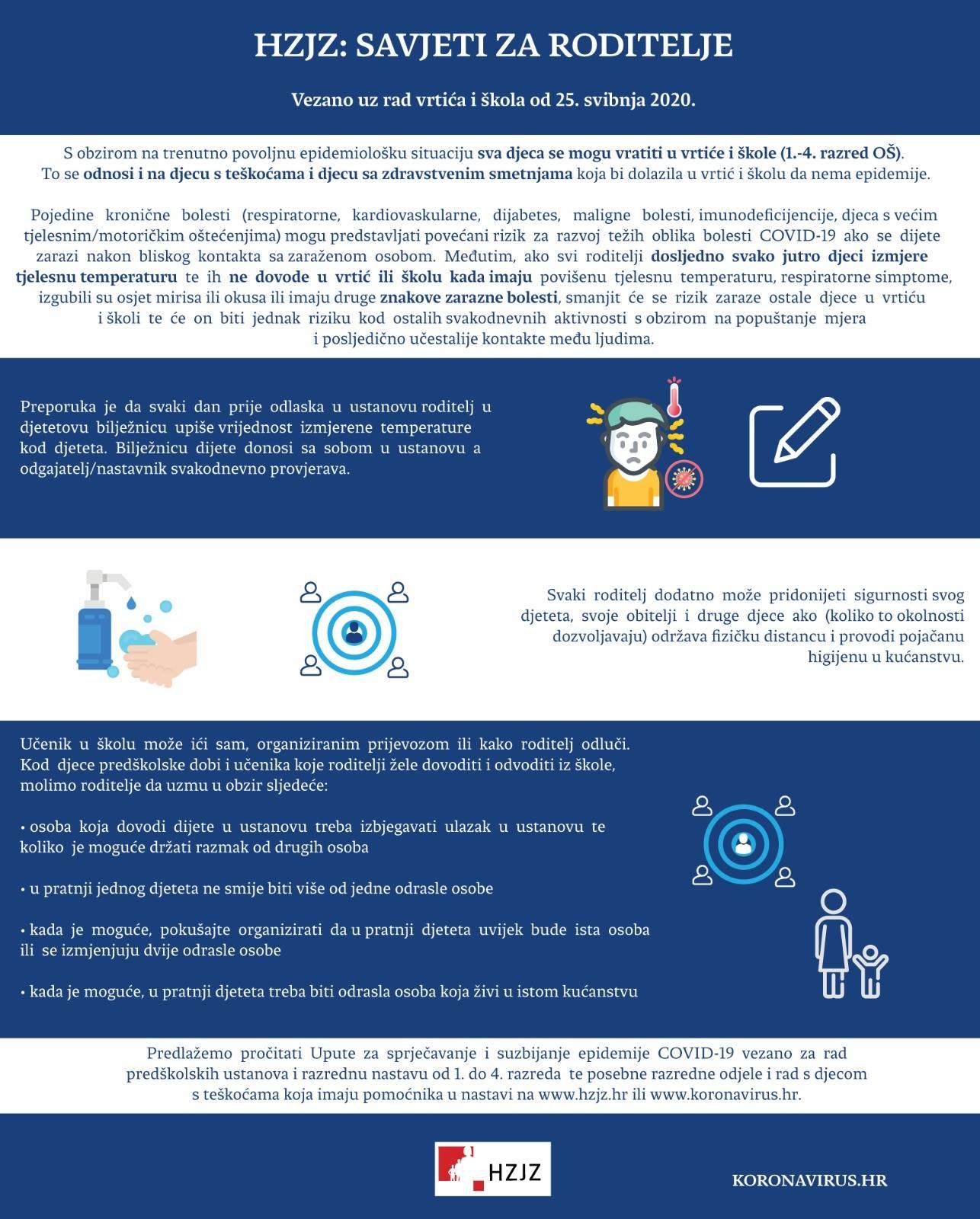 molimo Vas da pročitate savjete Hrvatskog zavoda za javno zdravstvo vezano za povratak učenika razredne nastave u škole od 25. svibnja 2020. godine.