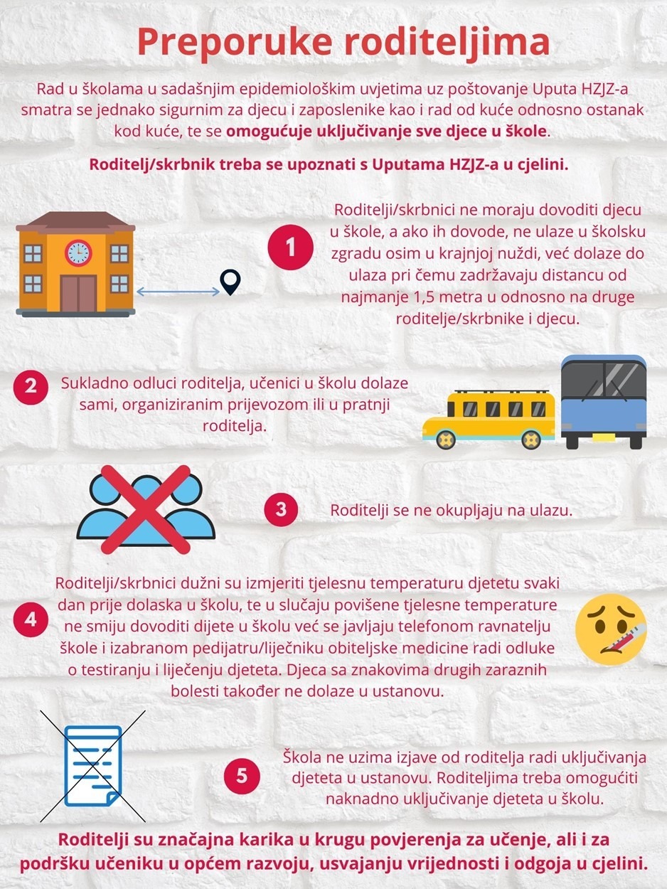 Molimo Vas da detaljno proučite upute HZJZ i Naglaske za roditelje Ministarstva znanosti i obrazovanja koje se nalaze u prilogu. (vidi pod Opširnije)